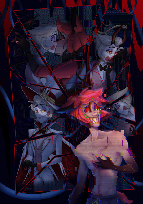 The relationship featured in the piece should be around Lucifer and Alastor only. Feel free to include references to past relationships as it fits your narrative, but the only active relationship and any graphic depiction should solely be RadioApple. (Exception: Lucifer's clones and Alastor's shadow are both allowed for this project, provided that the shadow is part of him and not a separate entity.)